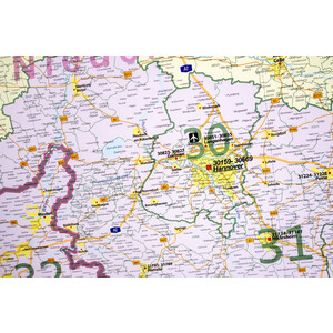 Auf der Karte sind die Unterteilungen der einstelligen Postleitzahlengebiete durch farblich unterschiedliche Hintergründe, die der zweistelligen Postleitzahlengebiete durch Trennlinien gekennzeichnet. Durch diese Unterteilung lassen sich die wichtigsten Vertriebsgebiete Ihres Unternehmens einfach und schnell auf der Karte optisch erkennen. So haben Sie und Ihr Team Ihre vertriebliche Organisation stets perfekt im Überblick!