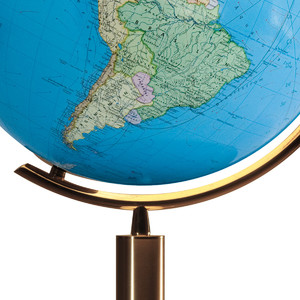 Das auf mundgeblasene Kristallglaskugeln handkaschierte Kartenbild vereint neben der perfekten Harmonie der Farben ein Höchstmaß an Aktualität und kartographischer Präzision.