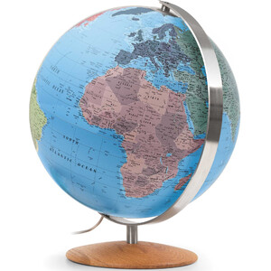 Der handkaschierte Leuchtglobus CTN 37 02 verbindet traditionelles Handwerk mit zeitgemäßem Design zu einem Globus, der sowohl informiert als auch inspiriert. Seine 37 cm große Kugel wurde in sorgfältiger Handkaschierung gefertigt – die Kartensegmente wurden einzeln aufgebracht und präzise eingepasst – und macht jeden Globus zu einem echten Unikat. Ausgestattet mit einem eleganten Holzfuß aus Eiche und einem Meiridian aus gebürstetem Edelstahl fügt er sich stilvoll in jedes Ambiente ein.