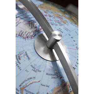Dieser äußerst repräsentative Standglobus verbindet auf gekonnte Art und Weise Tradition und Moderne. Eine traditionell von Hand kaschierte Kugel mit einem Durchmesser von beeindruckenden 75 cm wird mit einem modern designten Gestell aus gebürstetem Edelstahl kombiniert.
