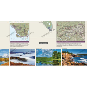 Schöne Bilder der Nationalparks verzieren die Karte am unteren Rand.
