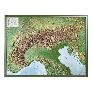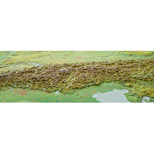 Echt 3D Reliefkarte der Alpen mit einer Reliefschummerung und farbigen Höhenschichten welche aus hochaufgelösten Geländemodellen abgeleitet werden.