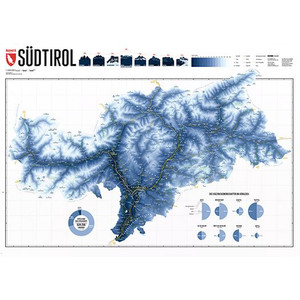 Oberhalb der Karte ist außerdem eine Auswahl der großartigsten Berge Südtirols illustriert!