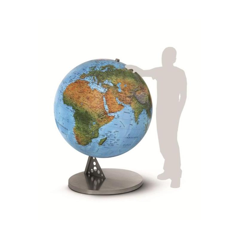 Mit seinem Kugeldurchmesser von 128 cm, einem eleganten Gestell aus Edelstahl und seinem neuartigen GIS-Kartenbild im Maßstab von 1:10 Millionen fasziniert dieser Großglobus, der in seiner Art der weltweit größte in Kleinserie hergestellte ist.