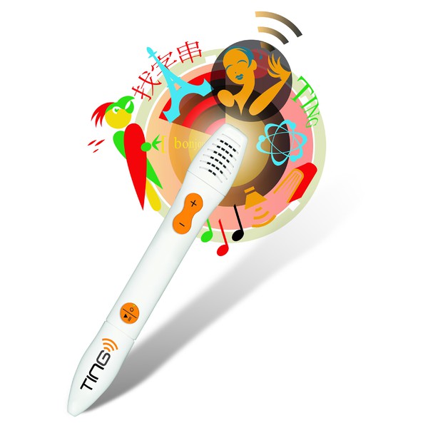 TING (chinesisch für "Hören") sieht nur aus wie ein einfacher Stift. In ihm verbirgt sich aber eine einmalige Technologie, die ihn zu einer Kombination aus Lesegerät und intelligentem mp3-Player macht. Mit dem Sensor an der Stiftspitze wird ein Code auf Buchseiten ausgelesen. Dieser Code ist mit unterschiedlichen Audiodateien, die zum Buch gehören, verknüpft. TING erkennt beim Antippen von Bildern oder Texten den Code, geht in seinen Index und spielt die passende Datei über den integrierten Lautsprecher (oder über den Kopfhörerausgang) ab. Das Gerät zeichnet sich durch eine kurze Reaktionszeit und eine hervorragende Klangqualität aus.