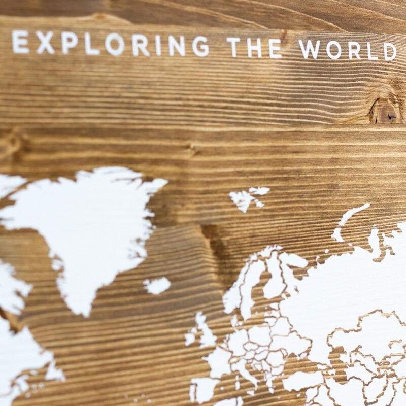 Das Naturprodukt Holz in Kombination mit der bewusst reduziert gehaltenen Weltkarte, verleiht Ihrem Zuhause ein sachliches, natürliches Ambiente gepaart mit Weltoffenheit und Expeditionslust.