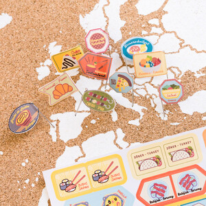 Vier Sets mit 64 Stickern von den besten Monumenten der Welt, den leckersten Speisen, den unglaublichsten Tieren und all den Objekten, die deine Reise einzigartig und unvergesslich werden lassen. Die beste Sticker-Sammlung, um deine Karte mit einem originellen Touch zu dekorieren. Worauf wartest du noch? Welches ist dein nächstes Abenteuer? Lebe es und - vor allem - erinnere dich daran mit den besten Accessoires für deine Karten.